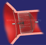 - Watchman Device - редставляет собой «зонтик», который устанавливается в ушке левого предсердия и держится благодаря специальными крючками. Благодаря такому строению полость ушка левого предсердия полностью отграничивается от полости левого предсердия. В связи с изоляцией ушка левого предсердия, резко снижается риск образования тромбов и как следствие эмболий в различные органы, в первую очередь в головной мозг. Данная операция проводится путем маленького надреза кожи (2-3 мм) в области паховой сладки и заведением специальных устройств в полость правого предсердия. Устройство доставляется из правого предсердия в левое предсердие, путем прокола межпредсердной перегородки, что является безболезненным и безопасным для пациента.